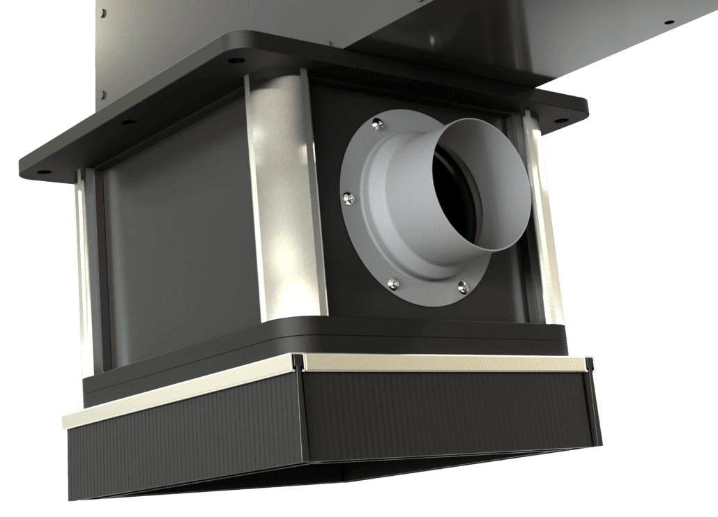 The optional fume extraction port can be factory-installed on any of the shroud’s side panels to best fit your workspace layout.